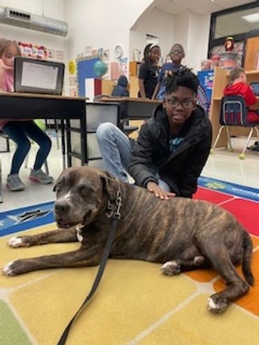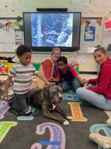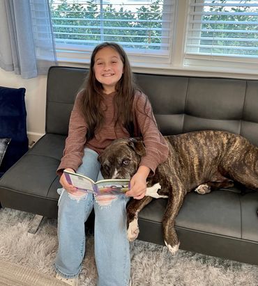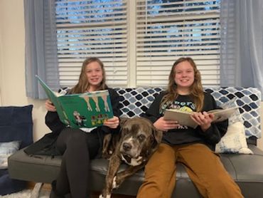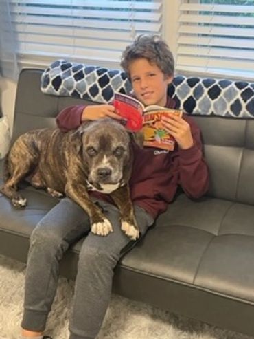 Finn is a 2-year-old rescue dog. He loves listening to children read to him.